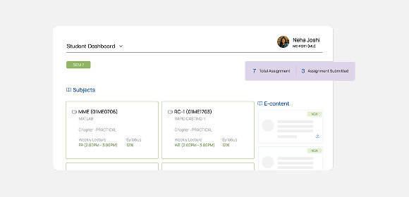 A smart dashboard to monitor students track record, interests and progress through regular status updates.